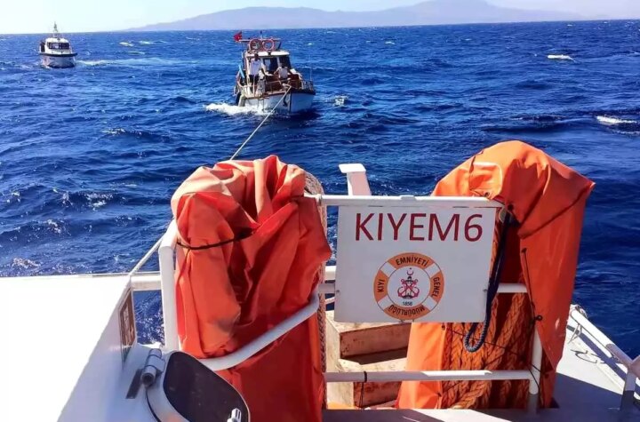 Muğla'nın Bodrum ilçesinde Gümbet açıklarında makine arızası yapan 10 metre uzunluğundaki tekne, Kıyı Emniyet...