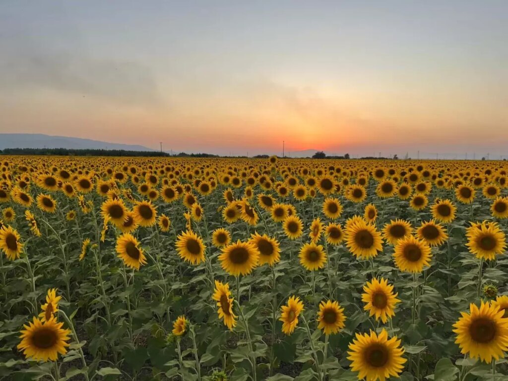 Aydın'ın Efeler ilçesindeki ayçiçeği tarlaları, bilhassa gün batımında sunduğu mükemmel görüntüyle doğaseverler ve fotoğraf tutkunları için tanınan bir yer haline geldi.