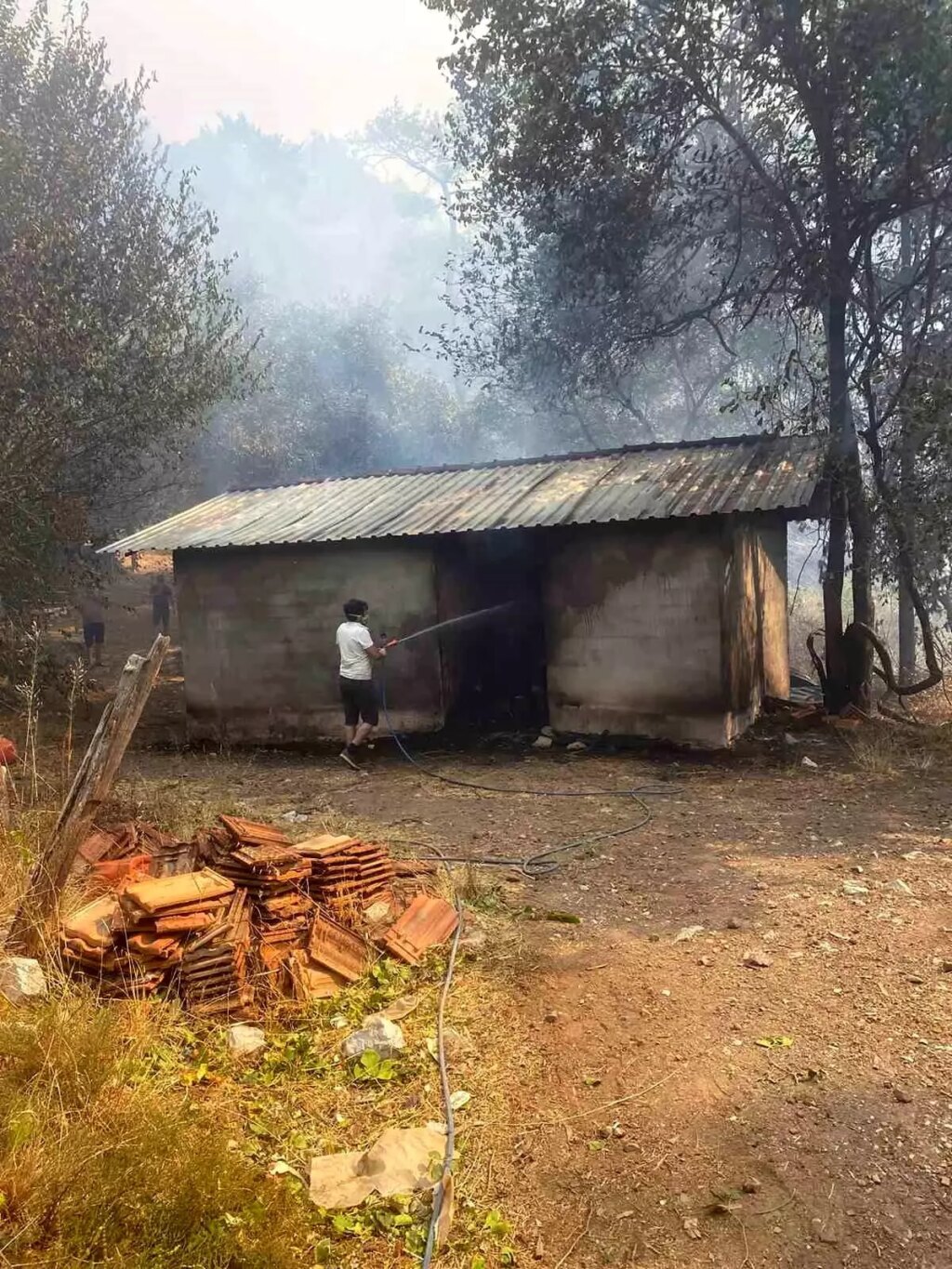 Bölgede depo olarak kullanılan binalara sıçrayan alevler bina içindeki materyalleri büsbütün yakarken, takımların karadan ve havadan müdahalesi devam ediyor. – MUĞLA