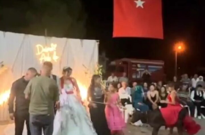 Muğla'nın Yatağan ilçesinde yapılan bir düğünde, damat Ramazan Karadağ'a eniştesi tarafından armağan edilen buzağı,...